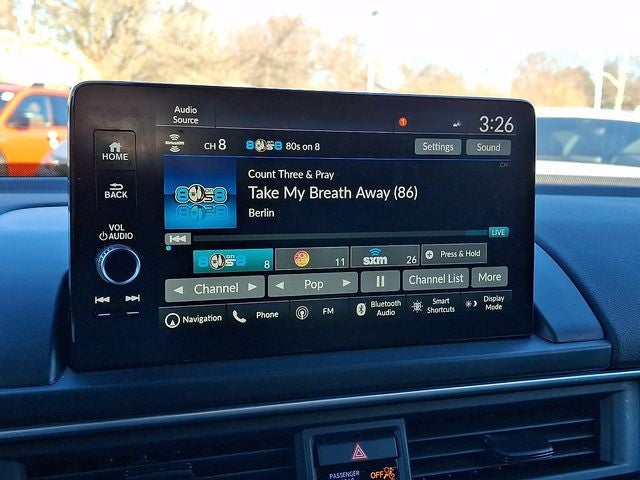 - Radio: BOSE Premium Sound System -inc: 12 speakers w/subwoofer, 9" color touchscreen, Bluetooth® HandsFreeLink and streaming audio, Radio Data System (RDS), Speed-sensitive Volume Compensation (SVC), wireless Apple CarPlay and Android Auto compatibility, Wi-Fi hotspot capability (requires AT&T data plan), SMS text message function (Your wireless carrier's rate plans apply, State or local laws may limit use of texting feature.), SiriusXM (SiriusXM requires a subscription after any trial period, If you decide to continue your SiriusXM service at the end of your trial subscription, the plan you choose will automatically renew and bill at then-current rates until you call SiriusXM at 1-866-635-2349 to cancel, See our customer agreement for complete terms at www.siriusxm.com, Fees and programming subject to change, Available in the 48 contiguous United States and D.C, SiriusXM and all related marks and logos are trademarks of SiriusXM Radio Inc.), HD Radio, 2.5-amp USB type-A smartphone/audio interface port in front console, Honda Satellite-Linked Navigation System w/voice recognition and Honda Real-Time Traffic (The Honda Satellite-Linked Navigation System functions in the United States (not including territories, except Puerto Rico) and Canada, Honda HD Digital Traffic service is only available in the United States, except Alaska, Please see your Honda dealer for details.), HondaLink subscription services ( complimentary trials of security for 1 year and a remote/concierge trial for 3 months, Enrollment is required to access the remote/concierge trial and to access certain features of security, At the end of each trial period, purchase of a subscription is required to continue the respective services.), multi-zone audio and CabinTalk in-car PA system