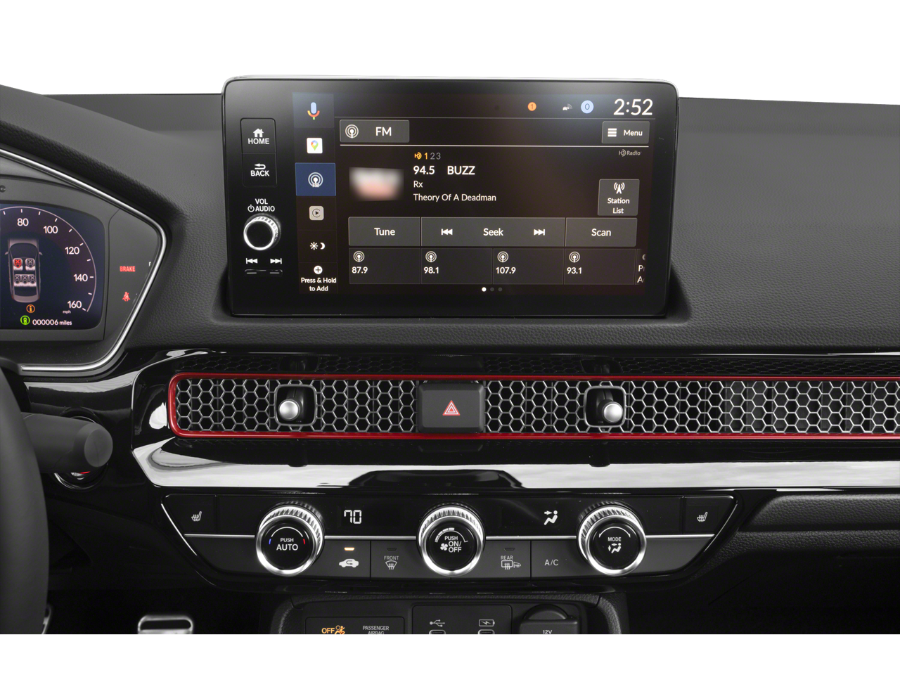 - Radio: BOSE Premium Sound System -inc: 12 speakers w/subwoofer, 9" color touchscreen, Google built-in w/3 years unlimited data plan for in-vehicle apps, Alexa built-in, Bluetooth® HandsFreeLink, Bluetooth® streaming audio, HondaLink, HondaLink subscription services, Speed-Sensitive Volume Compensation (SVC), Radio Data System (RDS), wireless Apple CarPlay and Android Auto compatibility, Wi-Fi hotspot capability, USB-C 3.0A smartphone/audio interface and HD Radio